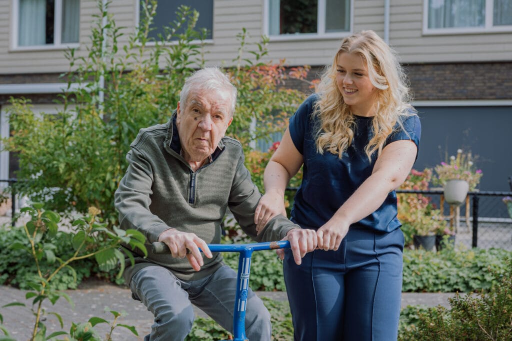 ‘’Gerd heeft een matig tot ernstig verstandelijke beperking. Vanaf het begin heb ik een hechte band met hem. Hij is een vriendelijke en vrolijke man die wel van een grapje houdt. Lopen kan hij goed, maar praten is voor hem wat lastiger. Soms vraag ik wat hij de dag ervoor heeft gedaan en dat kan hij het me meestal wel vertellen. Ik ga vaak met Gerd fietsen of ergens naartoe, want dat vindt hij helemaal geweldig en daar geniet hij echt van. Soms vindt hij het ook leuk om mij een beetje te plagen.
