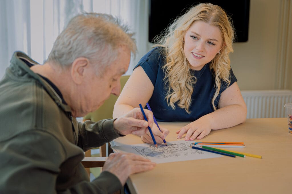 Samen met mijn collega’s stemmen we af wie welke taken oppakt. Daarna begin ik met het verzorgen van de bewoners. Dat kan variëren van hulp bij wassen en aankleden tot kleine dagelijkse handelingen.
