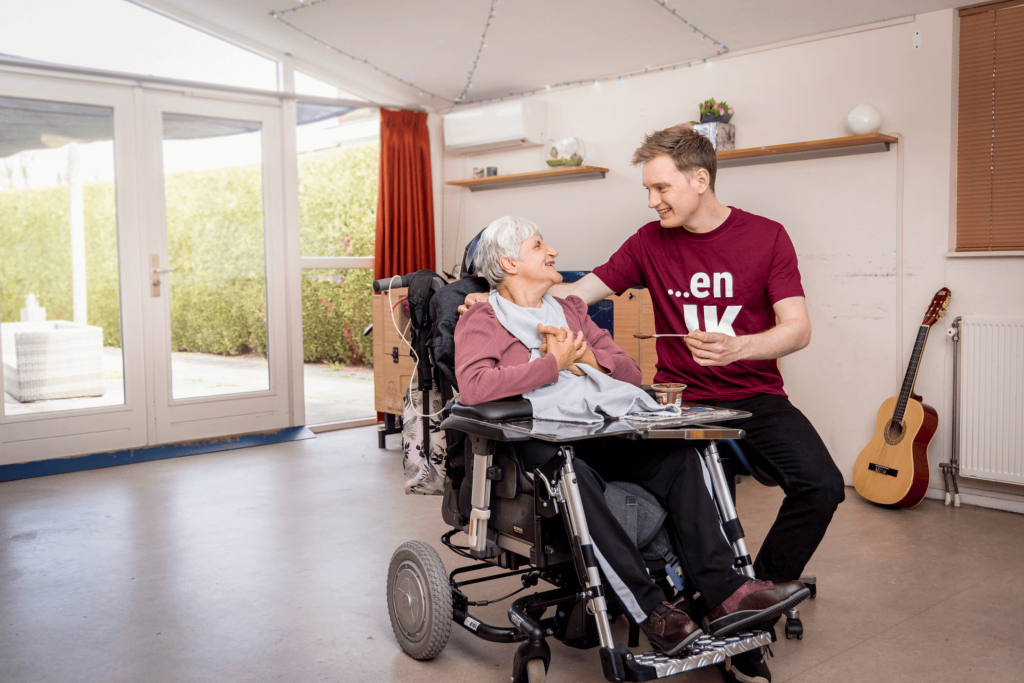 Tijdens de BBL-opleiding Verpleegkunde (mbo niveau 4) bij Dichterbij leer je hoe je zorg verleent aan mensen met een verstandelijke beperking op een professionele én betekenisvolle manier, waarbij je hen ondersteunt in het dagelijks leven. Je werkt met cliënten die soms ook te maken hebben met lichamelijke beperkingen, psychische klachten of bijvoorbeeld ouderdom. Denk bij lichamelijke beperkingen bijvoorbeeld aan slechthorendheid, blindheid of moeite met praten.
